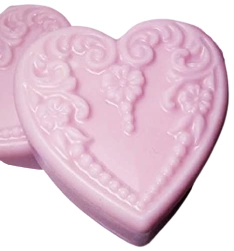 Fresh Rose Scented: Fancy Boxed Gift Set 3 Pc Body Products - This beautifully boxed will have the following scented items: 1 - 2 oz flip top bottle of shea butter lotion .1 - full sized roll on bottle of our alcohol-free perfume oil in a sparkly pink rhinestone cap..1 - large fancy heart soap in our popular goatmilk & shea butter blend (super moisturizing).All will be scented in Fresh Cut Rose, an intense floral with a definite "green" note just like a freshly cut rose on the stem.. Richly scented these rich and moisturizing soaps are excellent as either hand soaps or bath bars and make a lovely scented decoration in a guest bathroom. Colors may vary from photo as they are custom tinted to the scent. See other listings for fragrances like Gardenia or Lily of the Valley. For a more variations on the rose theme - see our other listings for Fresh Cut Rose and English Tea Rose.Note:Labels in some photos may be of other scents, but general packaging is the same. You will receive the scent listed above.The products come nestled in colored tissue inside a glossy pink gift box and tied with an organza ribbon all ready for gift giving. The glossy gift box is then packed with paper inside a kraft brown outer box for protection. See our other listings for powder puff designs and our scented talc-free silk or our zinc based body powders